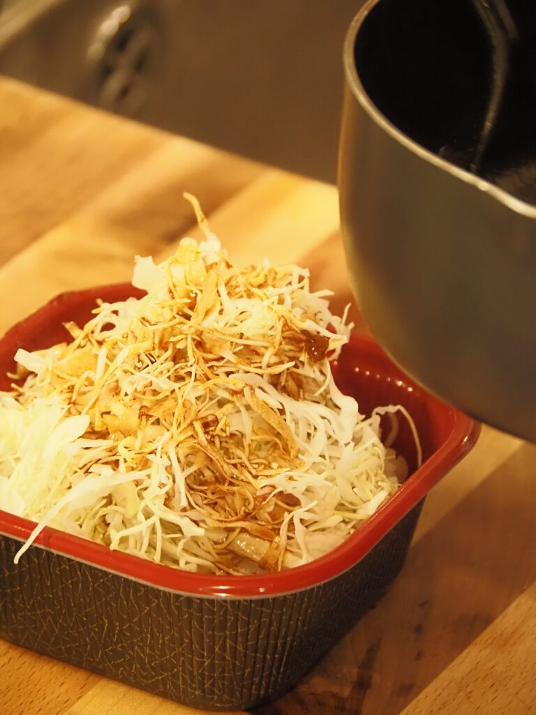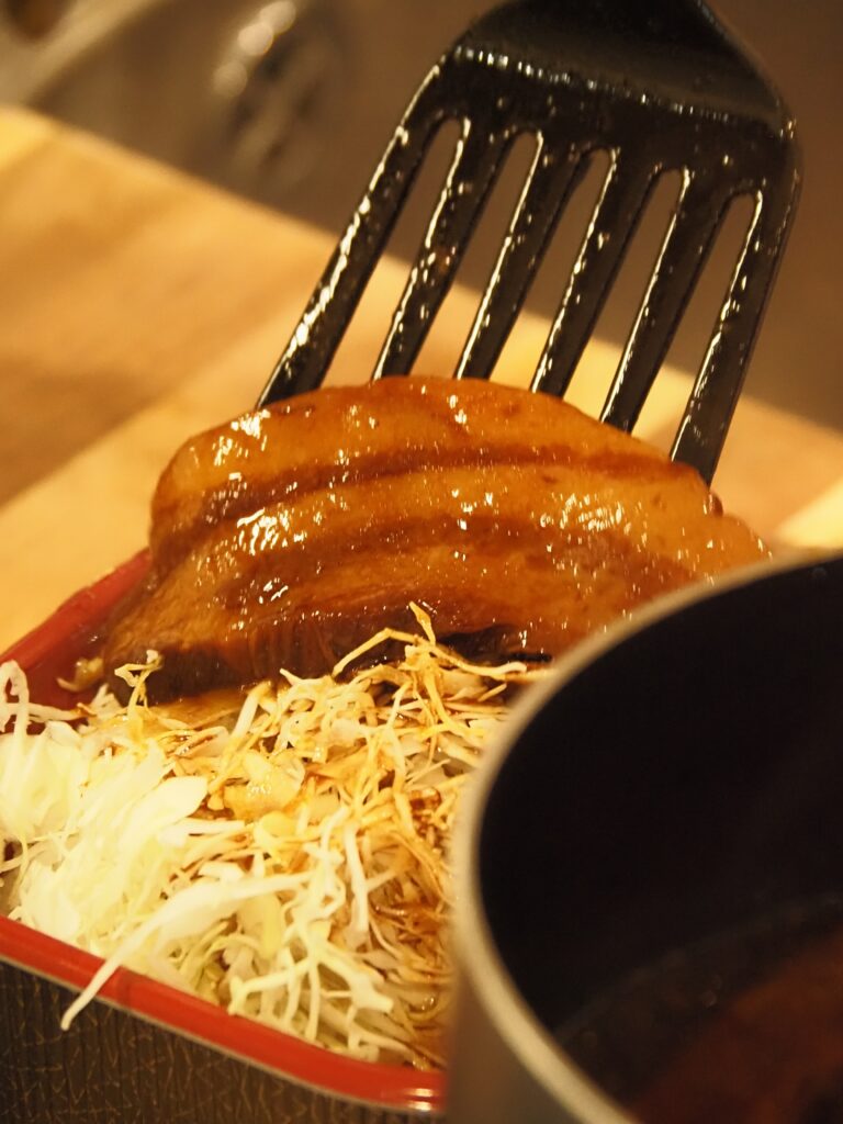 再びゆっくり火を入れる。沸騰させる過程で灰汁を取り味加減をみる。決め手は舟山チーフの舌。時にスープのまま、時に白米にかけてと様々な角度からベストを探っていく。途中お玉の底で優しく肉を撫でるような素ぶりをみせた舟山チーフがポツリとこう呟く「こうやってお肉を可愛がっているんですよ。」ふむと思った私、長くやられてきて我が子のように思えてくるものなんだろうか。舟山チーフに聞いてみると「…」今は極めてデリケートな作業なのである。