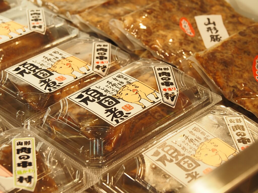 …頑固煮をはじめ、肉の中村が取り扱う素材はどれも -認定山形豚、米沢豚一番育ち、総称山形牛等- と名だたる銘柄豚やブランド牛が揃っている。その理由は高級志向のそれではなく、安心と健康に裏打ちされた商品作りを求める姿勢に由来する。